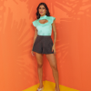 TECIDO ESPECIAL ESTRUTURADO, DETALHE FRONTAL, GOLA ALTA E MANGUINHAS.